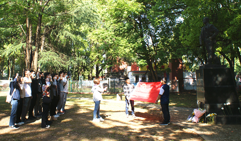 “我志愿加入中國(guó)共產(chǎn)主義青年團(tuán),堅(jiān)決擁護(hù)中國(guó)共產(chǎn)黨的領(lǐng)導(dǎo)……”在青少年宮陳延年雕像前,團(tuán)員青年佩戴團(tuán)徽,排著整齊的隊(duì)列,面對(duì)鮮紅的團(tuán)旗,緊握右拳,鏗鏘有力地重溫入團(tuán)誓詞。